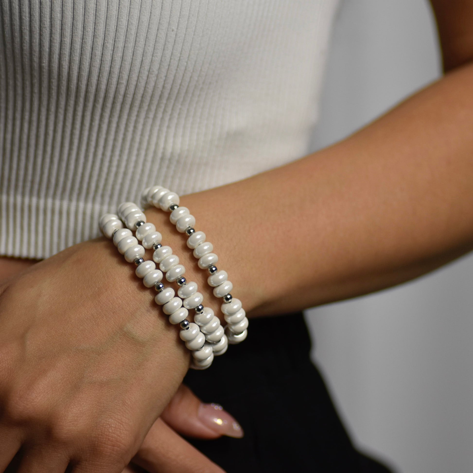 Pulseras perladas con combinación dorada para llevarla con cualquier outfit en el día a día